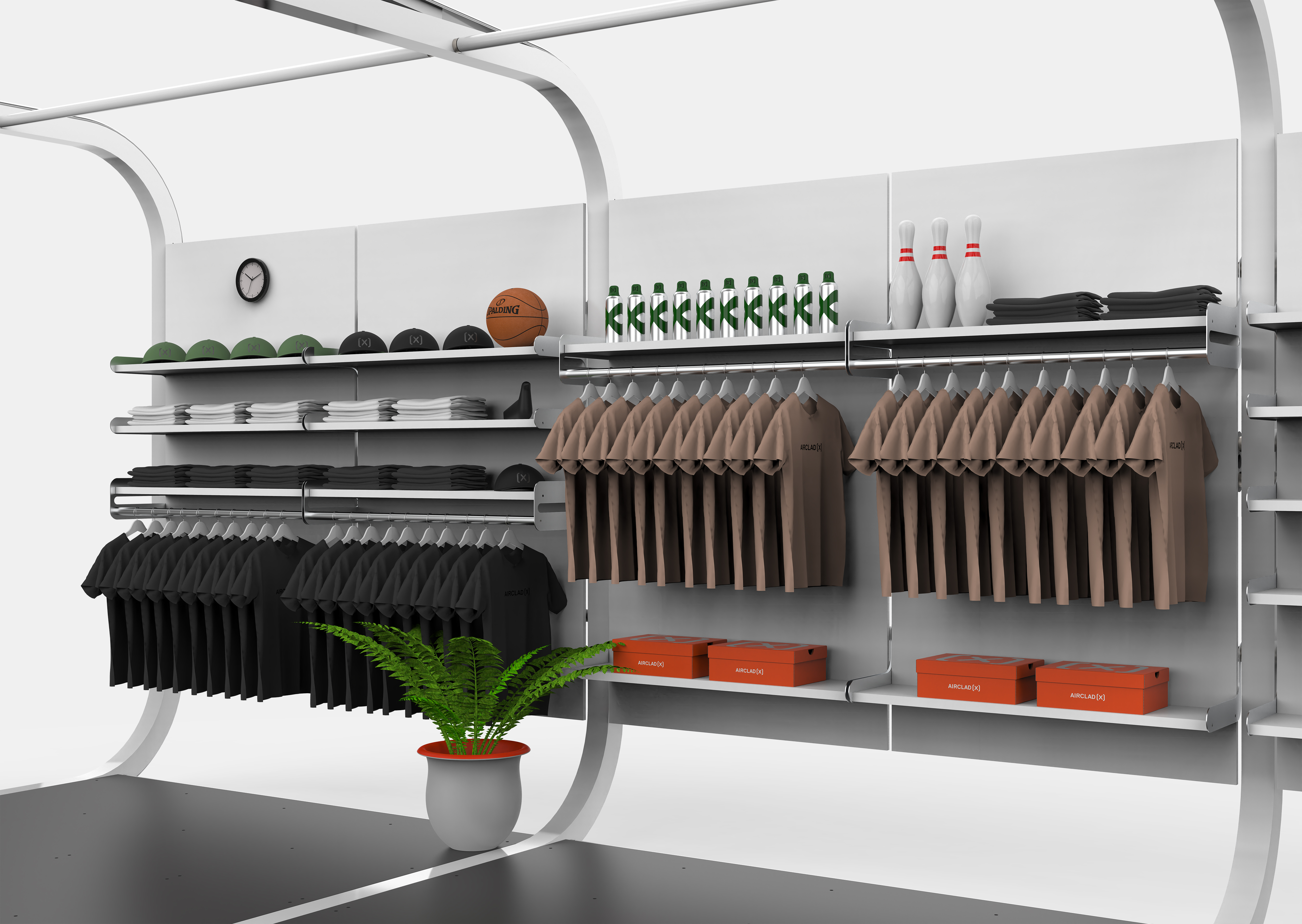 XPLAY creates an efficient retail platform for maximum return with shelves and storage that can be continually reconfigured on multiple levels in full and half width bays. All parts can be installed by one or two people once the system is built without the need for any additional fixings.